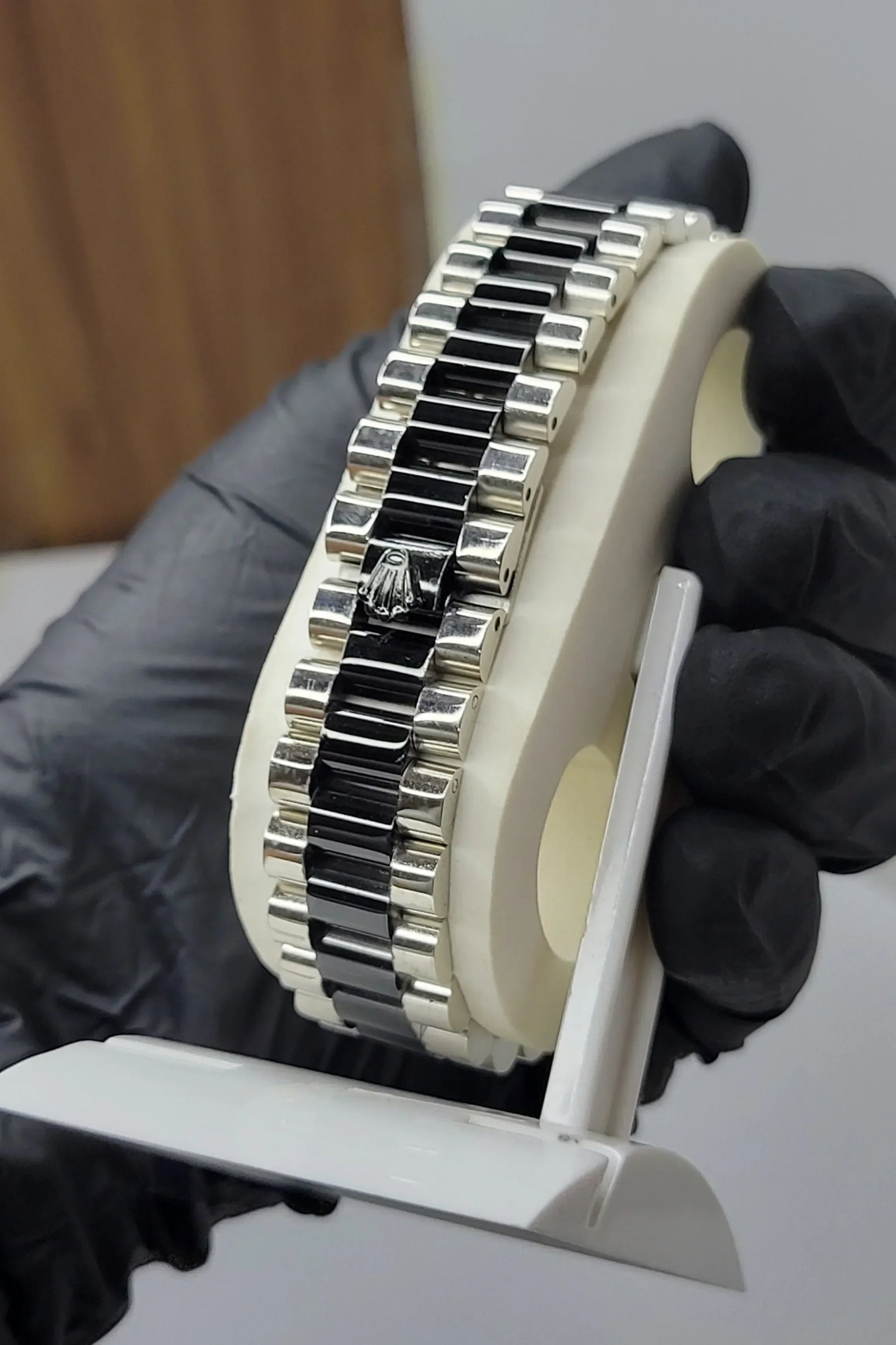 This Rlx watch features a sophisticated two-tone design, blending polished stainless steel with luxurious gold accents.